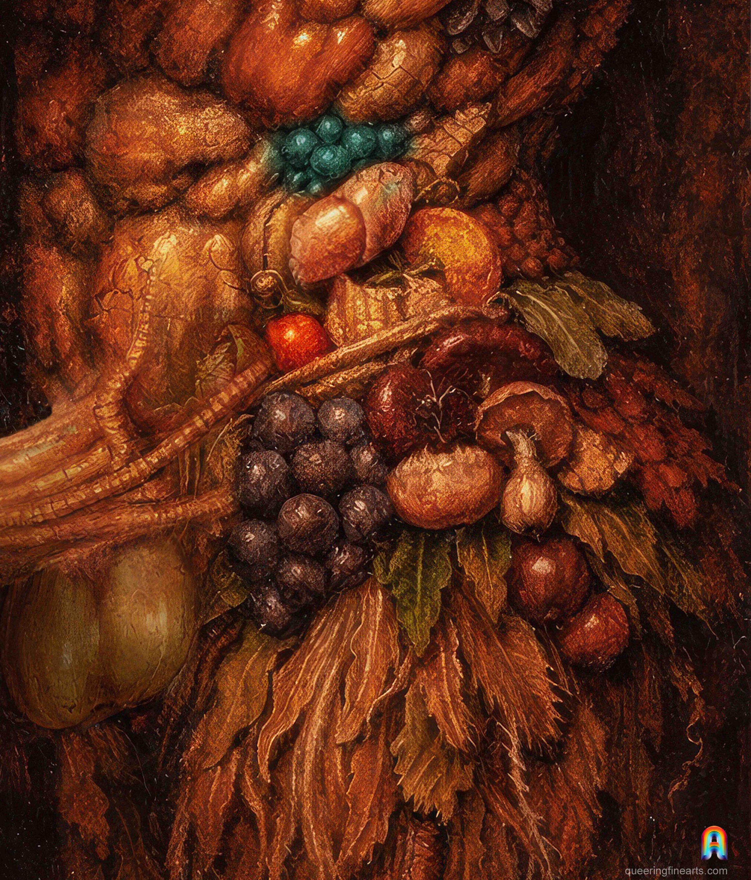 Uncertainty may therefore remain regarding Arcimboldo’s sexual orientation. His work, however, may be read without hesitation as profoundly queer. It dismantles the idea of a natural identity, transforms the body into assemblage, turns appearance into staging, blurs the boundaries between realms, and replaces the fixity of the subject with a logic of metamorphosis, mask, and composition. In Arcimboldo, being is never simply given: it is always in the process of composing itself, and this constant mutation grants it a complexity that removes it from all banality.